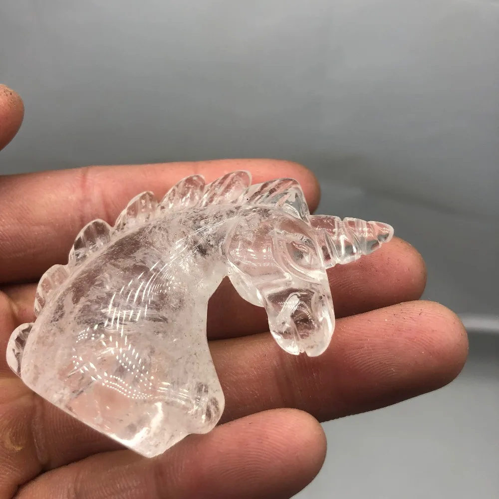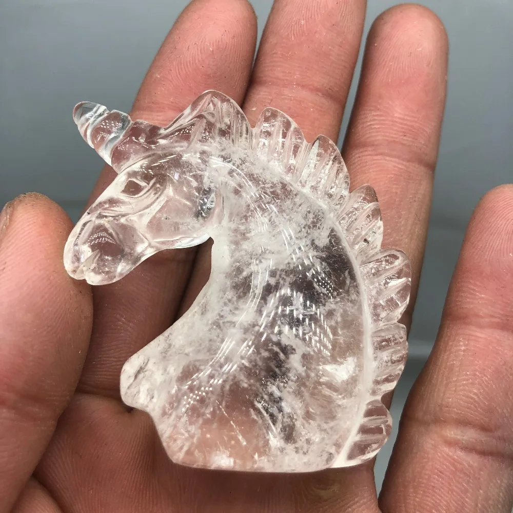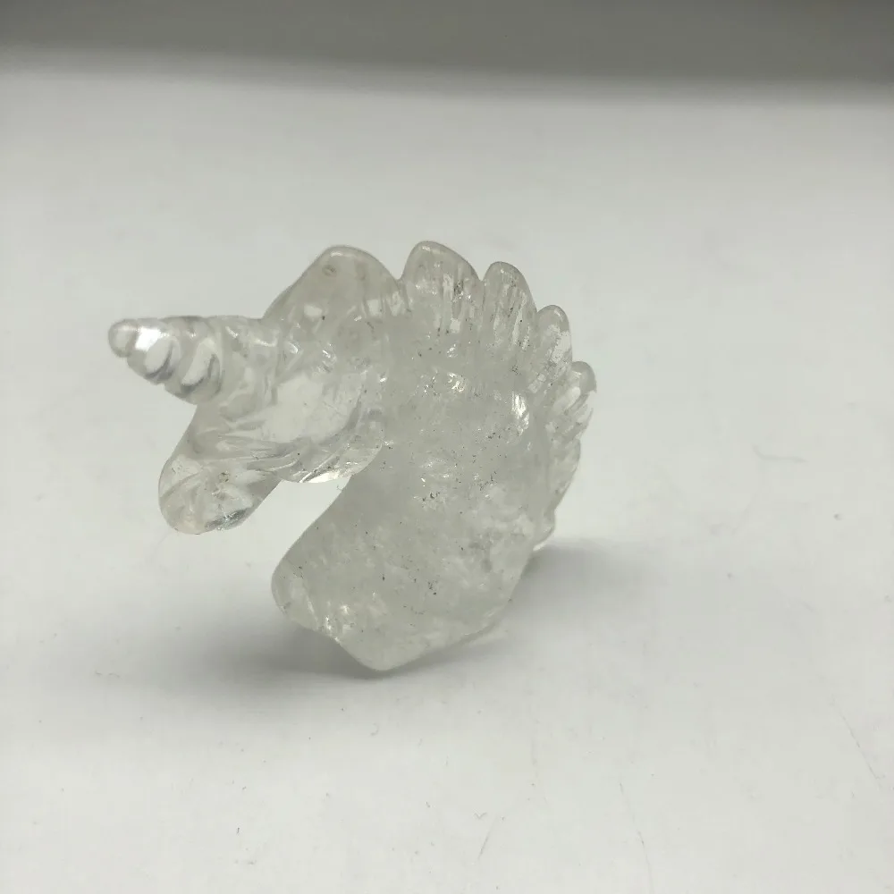 BEST 1pcs Natural Stone Quartz White Crystal Unicorn Statue Decoration Carving Horse Head Crafts Handmad