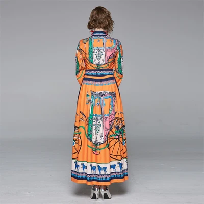 High Quality Luxury Brand Designer Runway Dress New 2019 Autumn Women's Horse Print Long Maxi Ankle