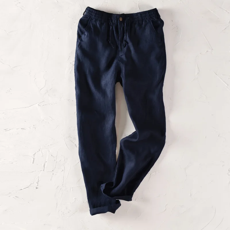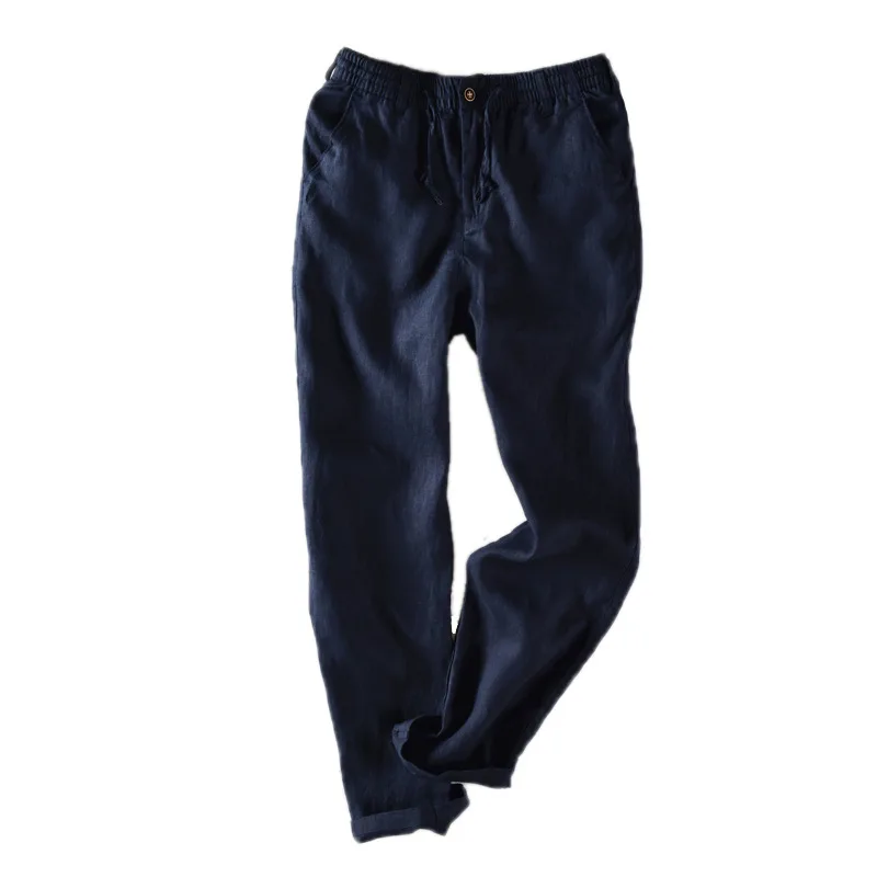 Best Seller 100%Linen Men Casual Pants Solid White Breathable Fashion Comfortable Full Length Mens Pants Y1902