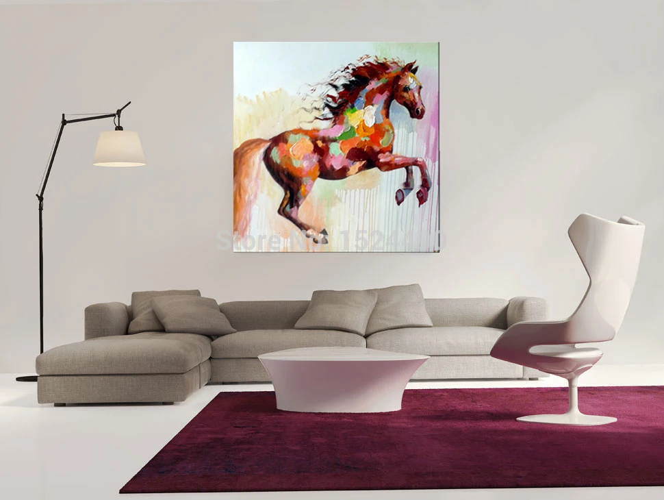 Hand Painted Abstract Animal Paintings Home Decor Funny Galloping Horse Oil Painting On Canvas Hang