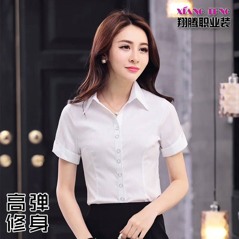 Best Workwear Shirt WOMEN'S Short Sleeved White Summer Korean-style Business Elasticity Wear Horse-Hoof-