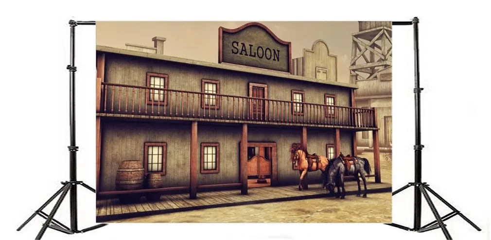 Hot Sale Photography Backdrop Ancient Western Saloon Horse Wooden Floor Photo Background Party