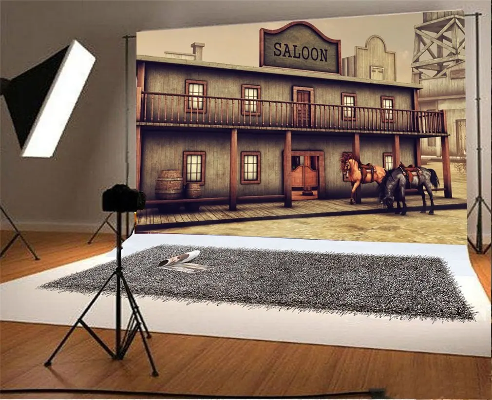 Best Photography Backdrop Ancient Western Saloon Horse Wooden Floor Photo Background Party