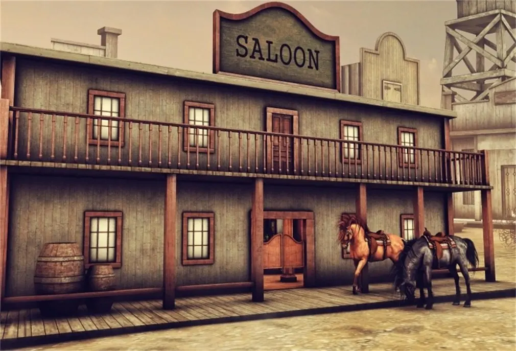 Photography Backdrop Ancient Western Saloon Horse Wooden Floor Photo Background Party