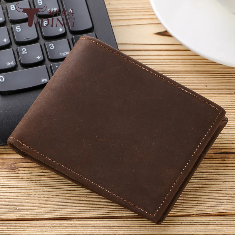 HOT Sale Tiding New Style Retro Simple Short RFID Antimagnetic Wallet Horse Leather Wallet Genuine Leather 2