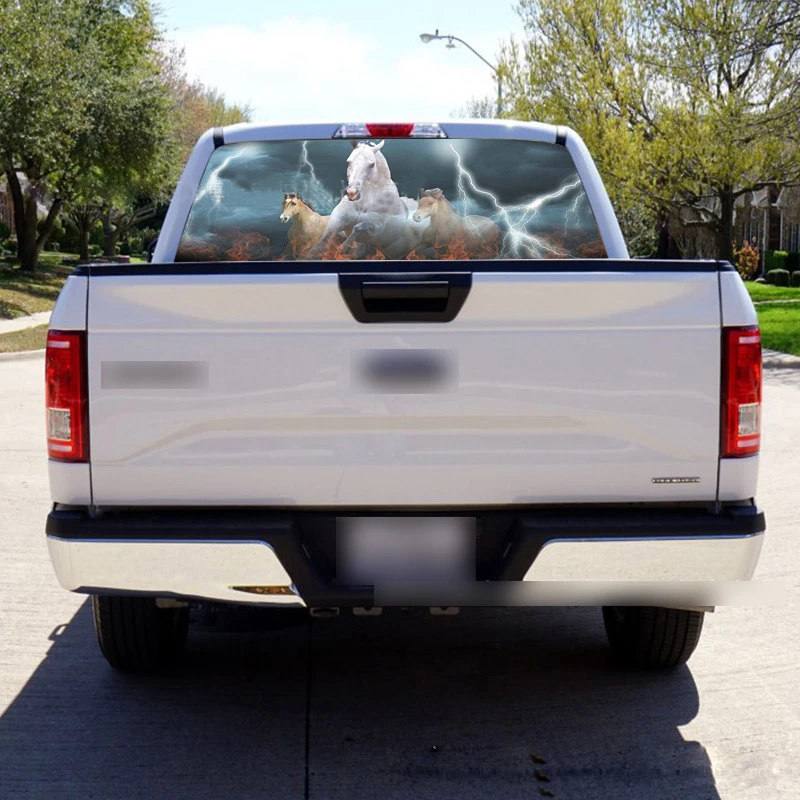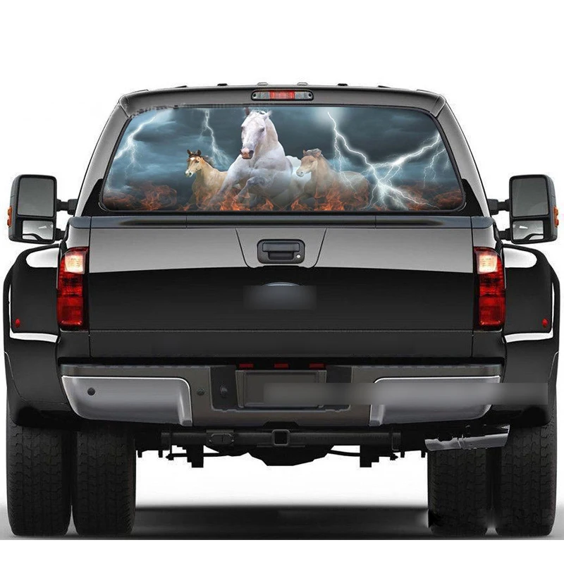 Best Seller 1 PC 135*36cm Horse Lightning Rear Window Mesh Stickers Car Accessory for SUV Pick-up High Beam Pro
