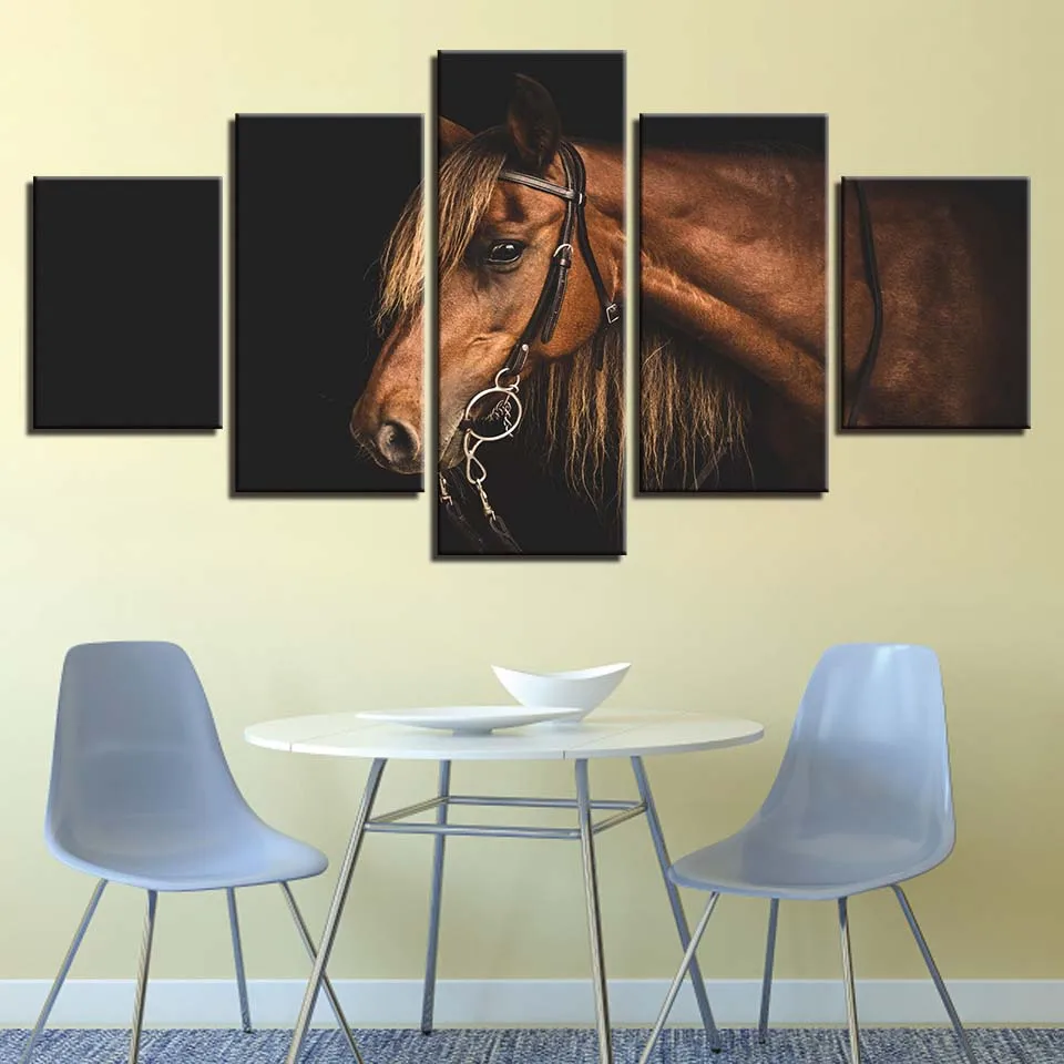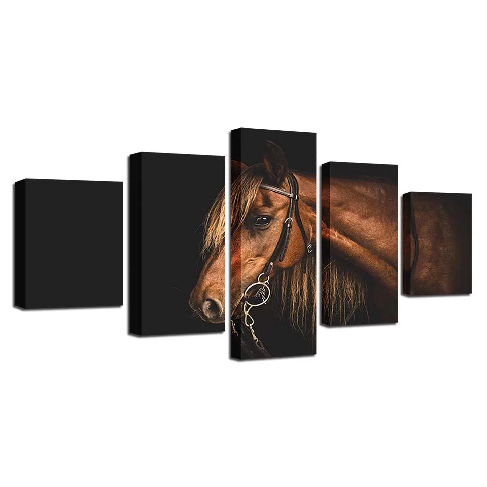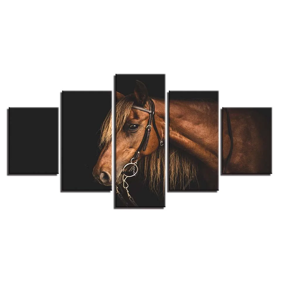 5 Pieces Brown Canvas Steed Paintings Home Decor Animal Fine Horse Posters Modern Wall Art HD Print