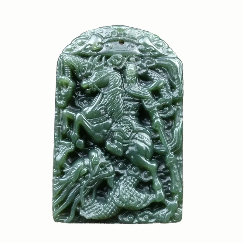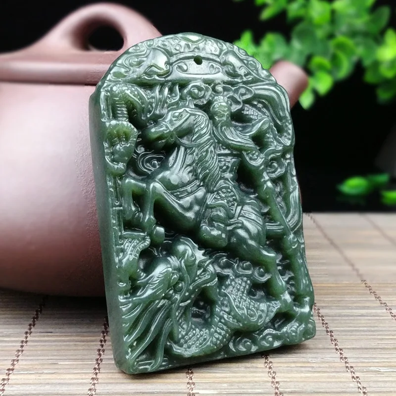 100% natural hetian green yu pendant horse riding Guanyu necklace brand men yu jewelry certificate